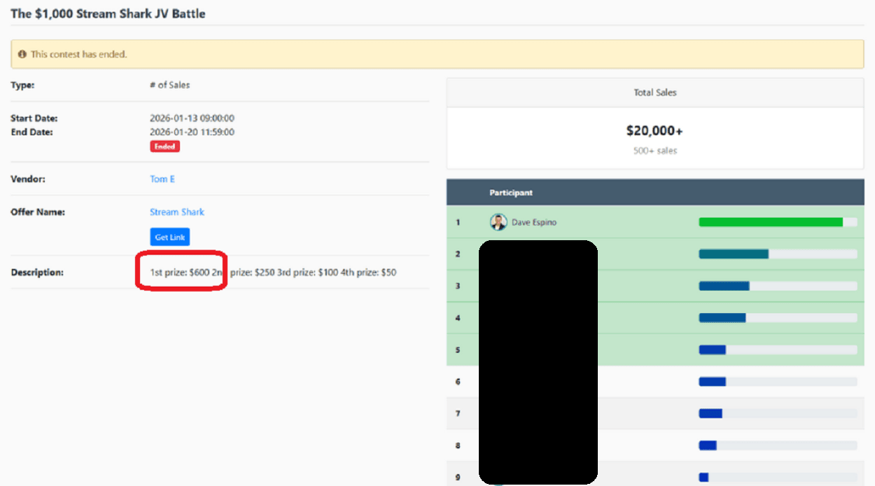 ✅   $600 for winning FIRST PLACE in the affiliate contest