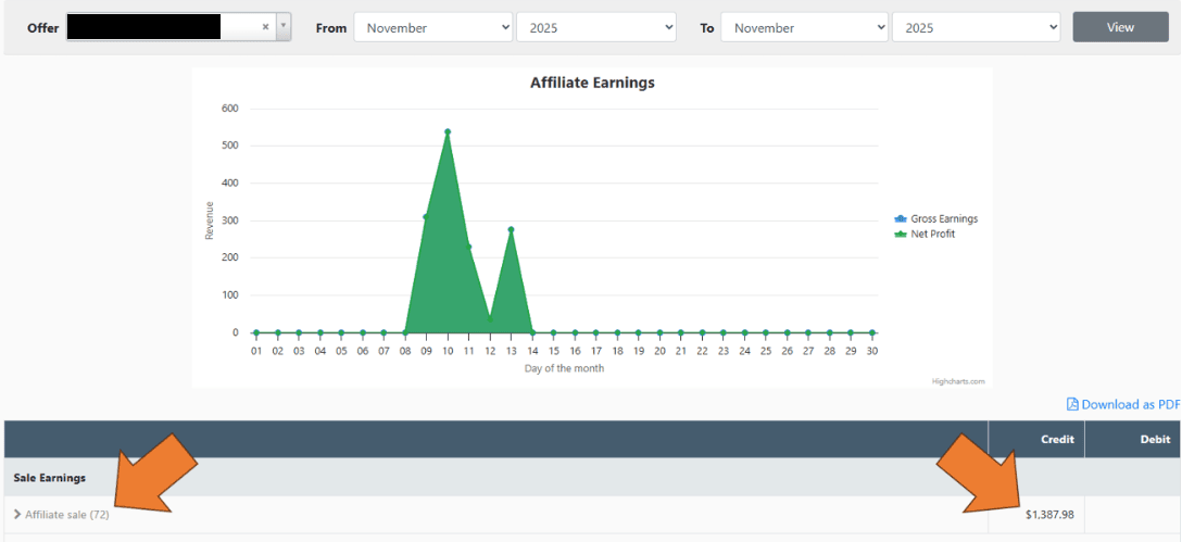 Below are my affiliate earnings for ONE WEEK, from ONE RECENT AFFILIATE CAMPAIGN.